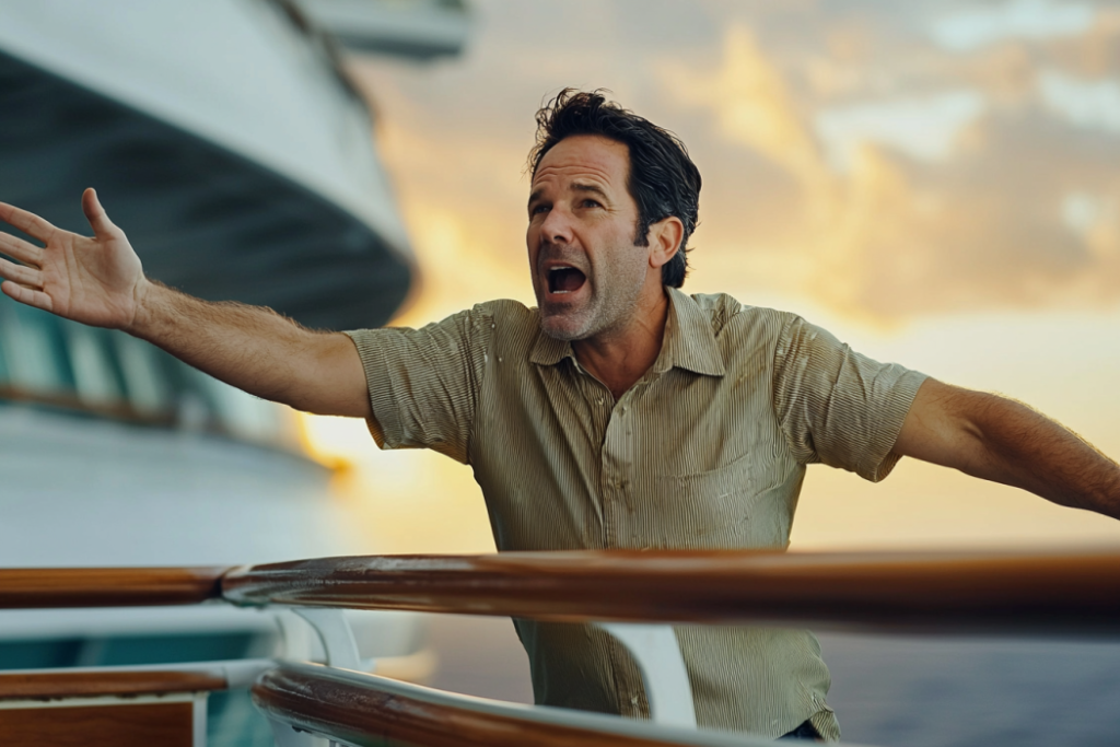 He leaned on the railing, gazing out at the vast expanse of ocean, allowing his mind to drift as the horizon stretched endlessly before him. It was a picture-perfect moment—one that seemed almost too serene to be real.