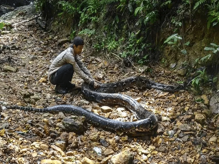 When the giant anaconda was halfway through the bushes, a giant bulge could be seen on its body! The workers could hardly believe their eyes, they had never seen anything like this before. They had to act…